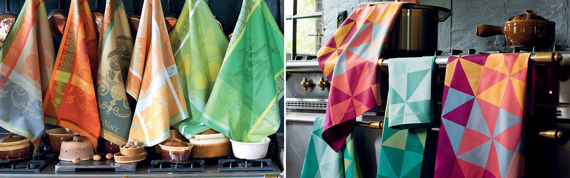 Entdecken Sie die äußerst kreativen Geschirrtücher aus 100% Baumwolle von Garnier-Thiebaut: eine große Auswahl an Küchenhandtüchern aus Baumwolle, um Ihre Küche auf die schönste Art und Weise zu kleiden oder Ihren Gastgebern anzubieten! Zudem bietet Garnier-Thiebaut eine exklusive Auswahl an ausgefallenen und farbenfrohen Schürzen für die Küche.